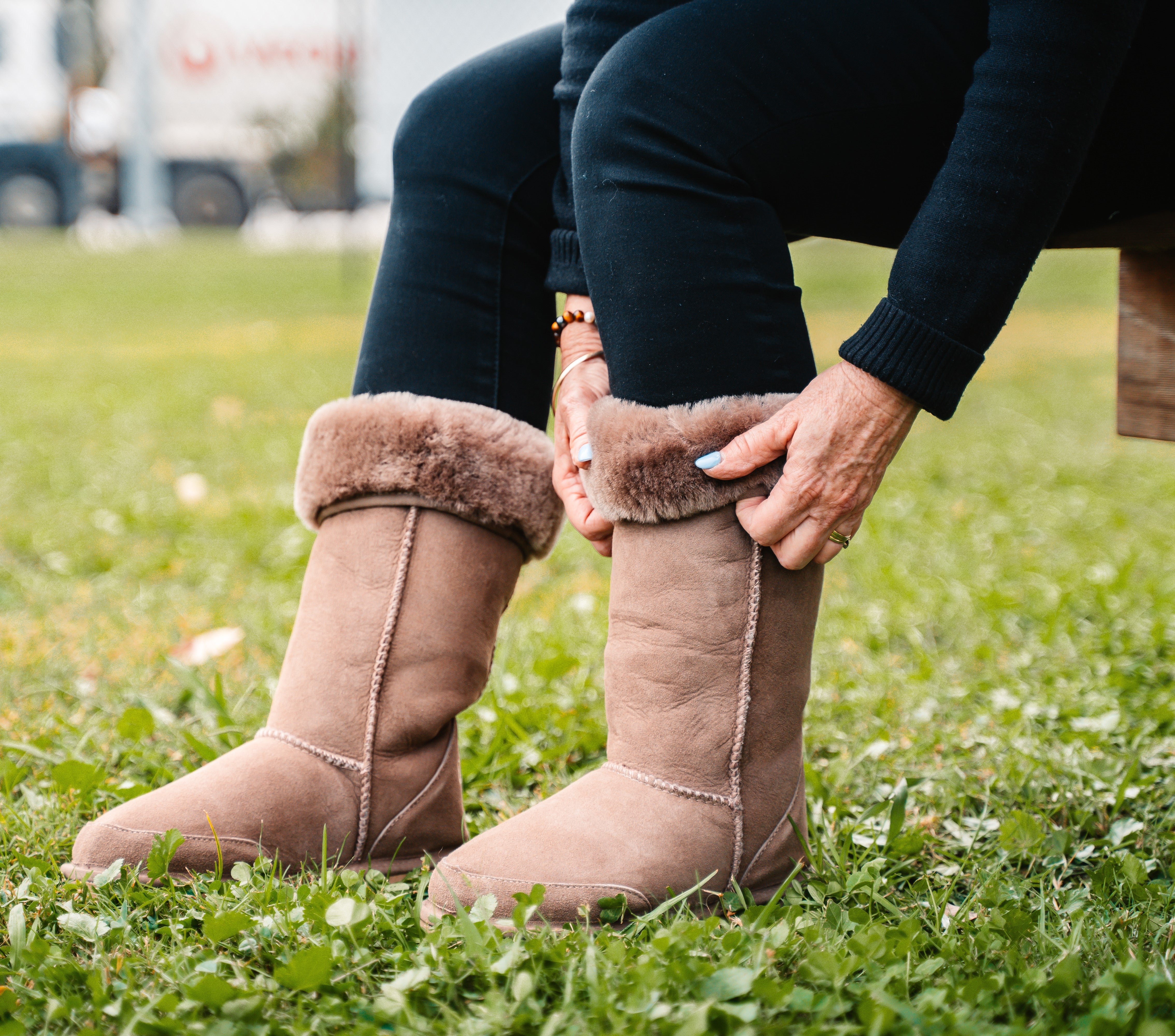 - A Nice Snug Fit: You want your boots to fit snug on your feet, but not too tight that your toes are pushing at the front. Please also consider that the sheepskin will stretch and mould to your feet with wear so you do not want them too loose.